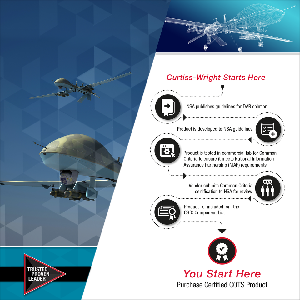The Curtiss-Wright’s DTS1 is the embedded industry's first COTS DAR NAS solution to receive Common Criteria Certification and CSfC component approval for both the hardware and software encryption layers, in a single device. Now listed on the United States NIAP Product Compliant List, the NSA’s CSfC Components List, and the International Common Criteria Certified Products list, system designers in Common Criteria Recognition Agreement (CCRA) member countries can now confidently select the DTS1 to greatly reduce the development time of their encryption solution.